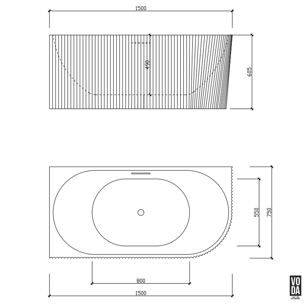 1500mm Binge Fluted Skirt Bath Left Matte White