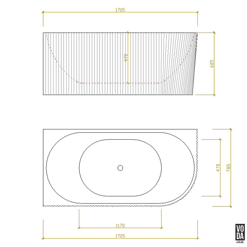 1705mm Binge Fluted Skirt Bath Left Gloss White