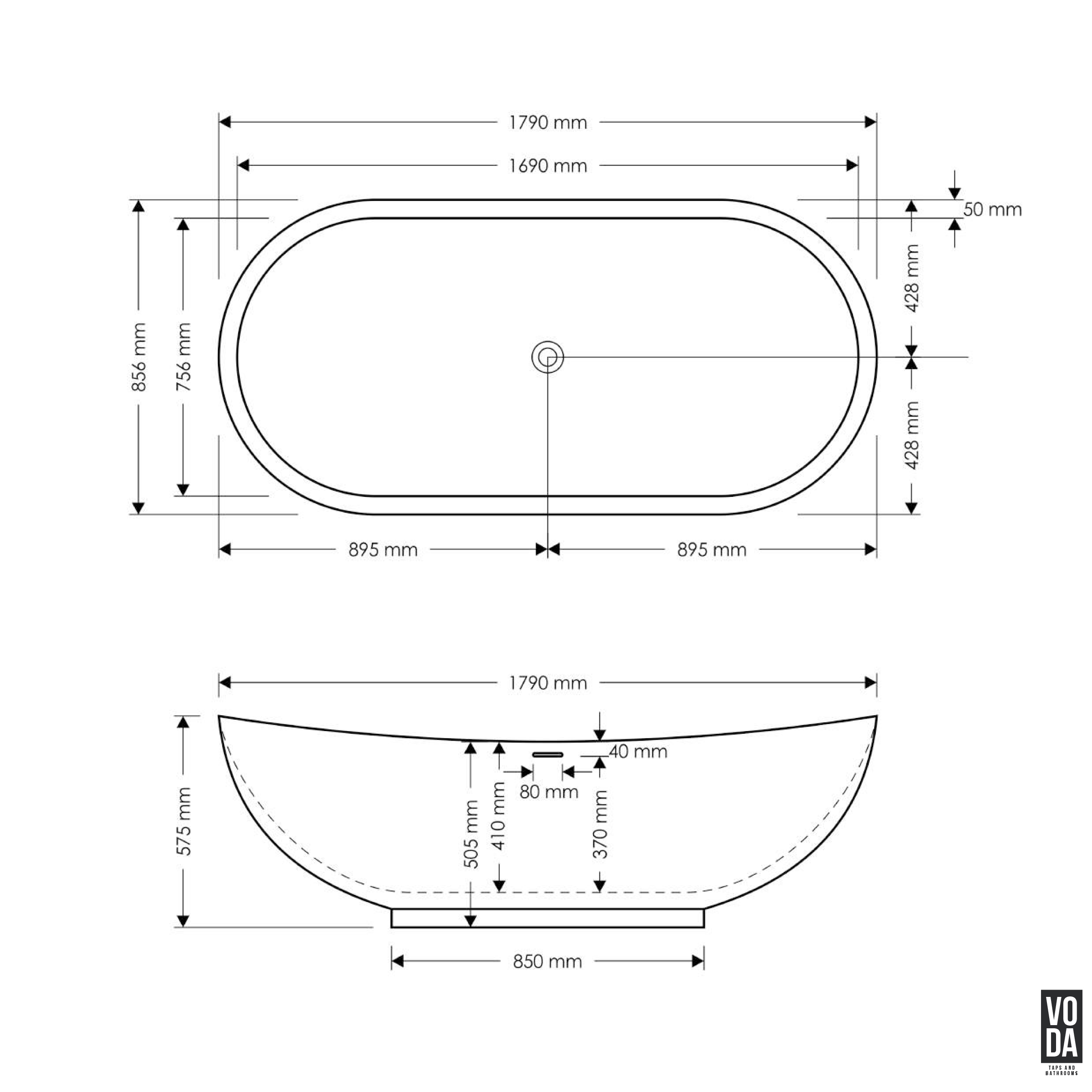 - Spacious Dimensions – Measuring 1790mm (L) x 856mm (W) x 575mm (H), suitable for freestanding bathroom layouts.