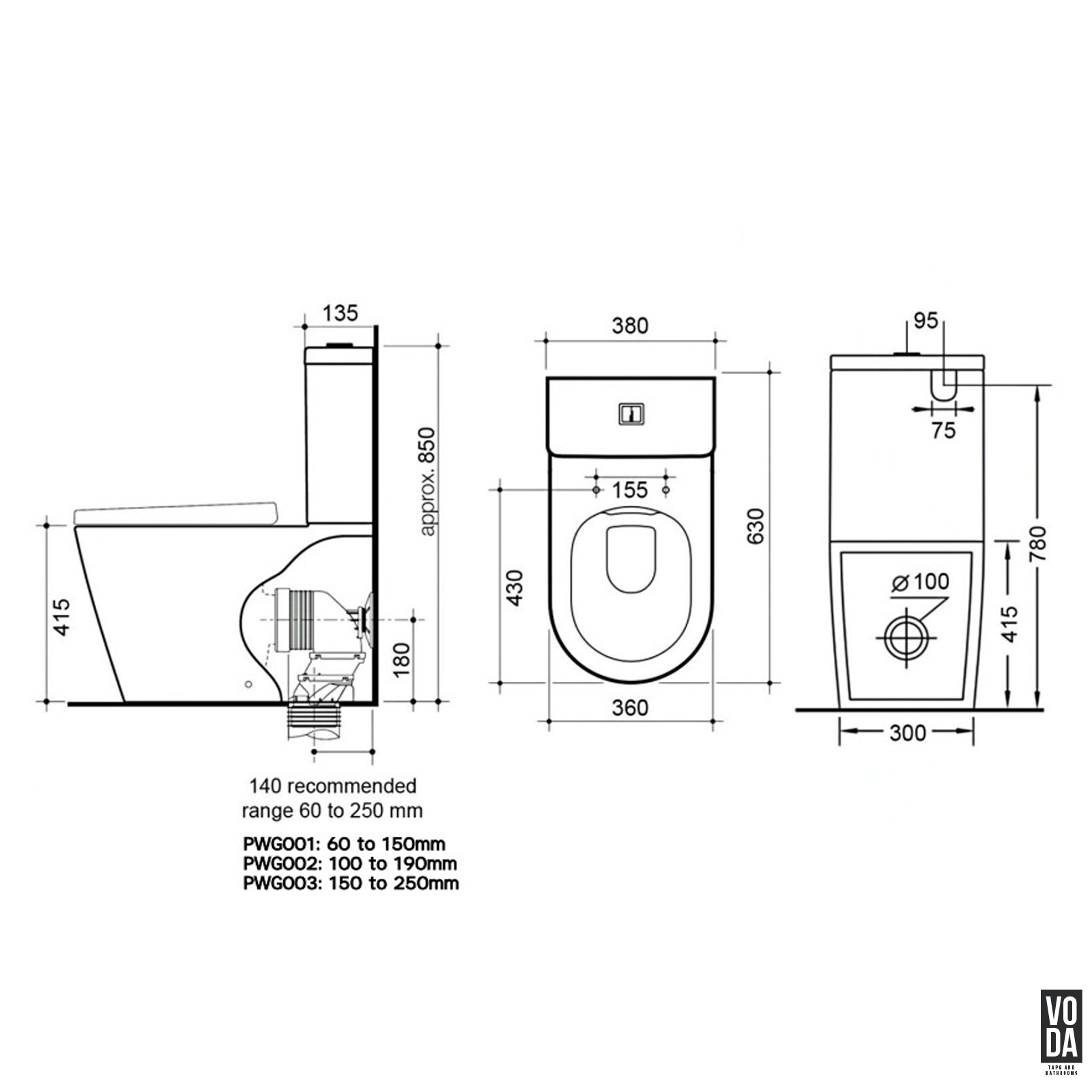 - Compact Dimensions – Measuring 630 x 380 x 850mm, suitable for both compact and spacious bathroom configurations.