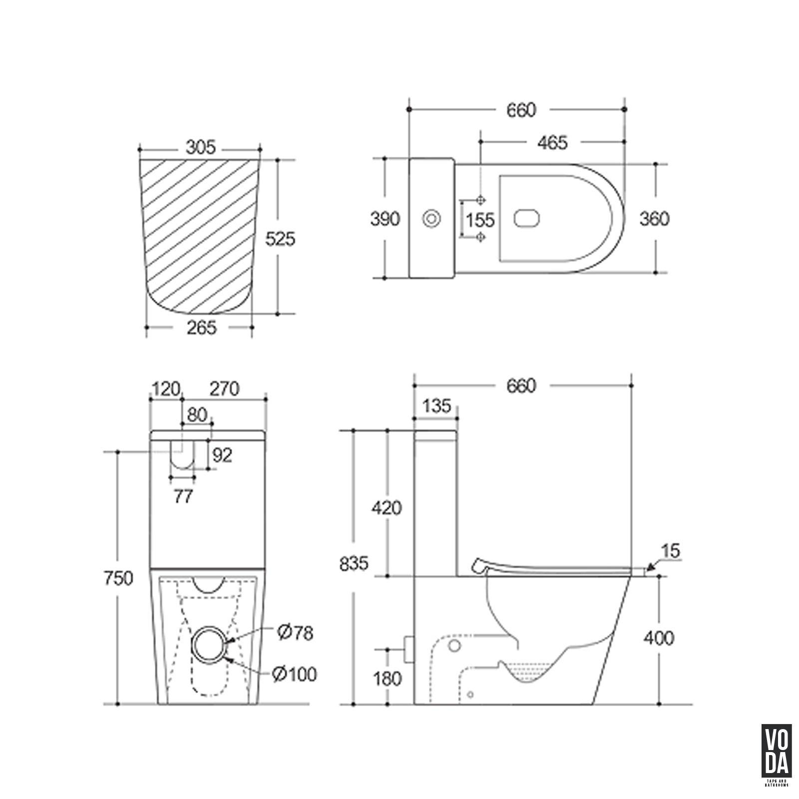 - Compact Dimensions – 660 x 360 x 835mm, suitable for both small and large bathroom spaces.