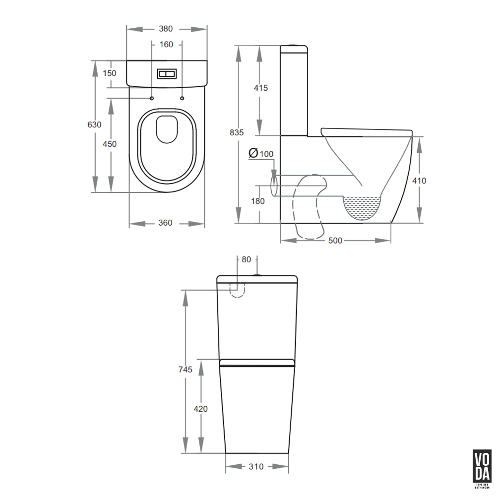 Designed for seamless renovations or new builds, the Tornado Flush Technology ensures superior hygiene, while the compact dimensions of 630 x 380 x 835mm make it a versatile choice for various bathroom layouts.