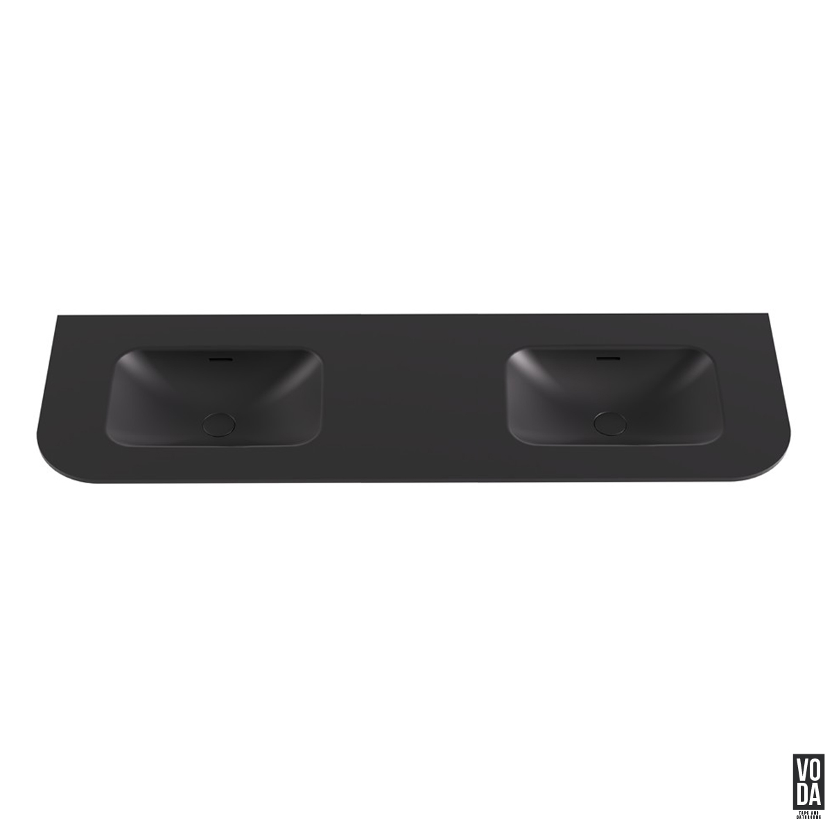 Aruro 1800mm x 500mm Double Bowl Solid Surface Stone Basin Matte Black