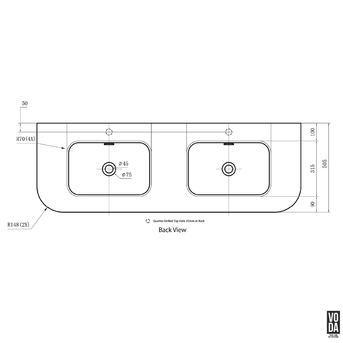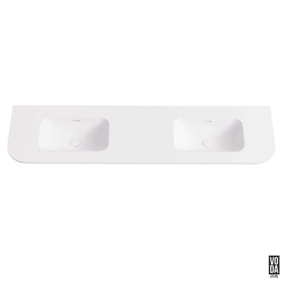 Aruro 1800mm x 500mm Double Bowl Solid Surface Stone Basin Matte White