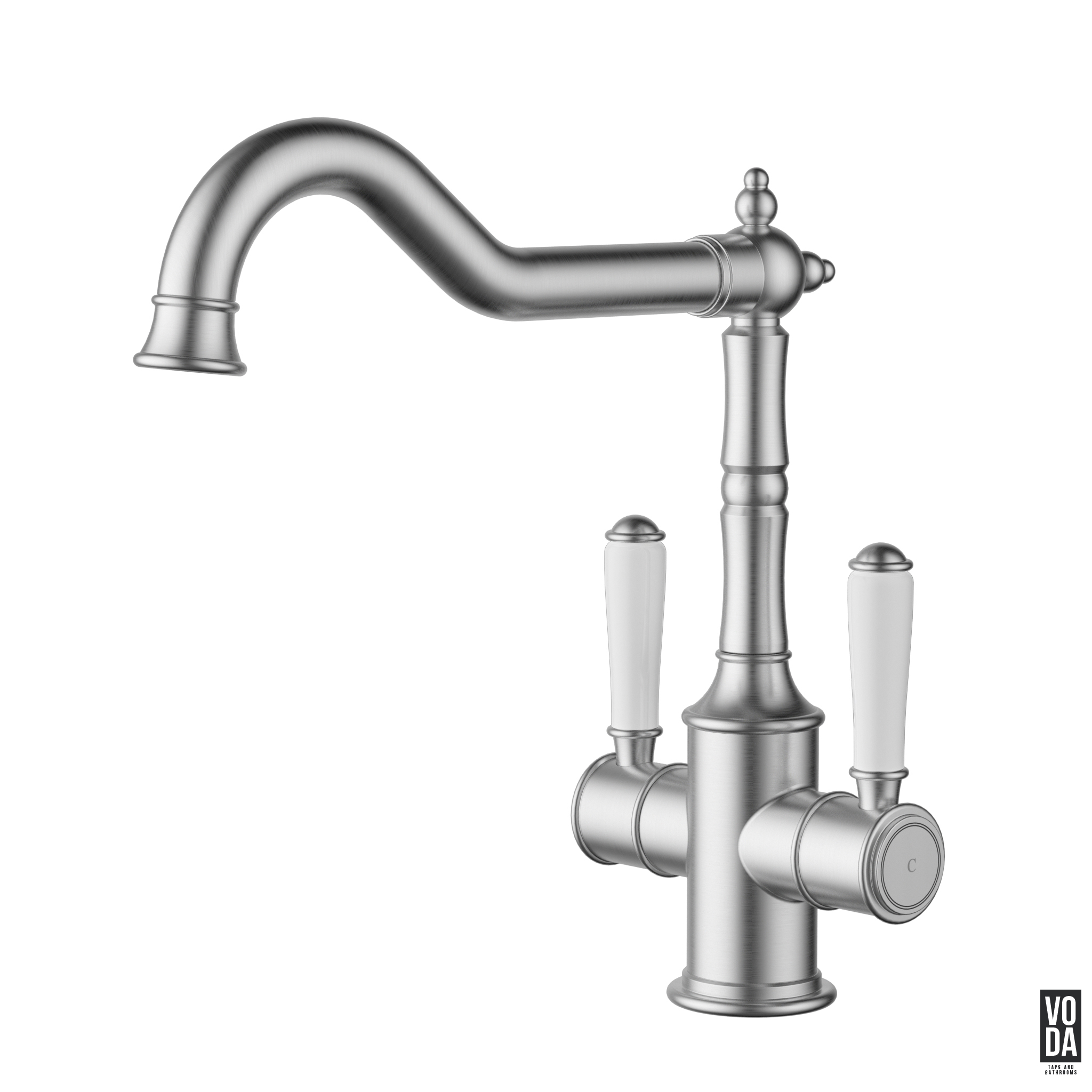 Cambridge Shepherds Crook Kitchen Sink Mixer with Twin Ceramic Handle Brushed Nickel