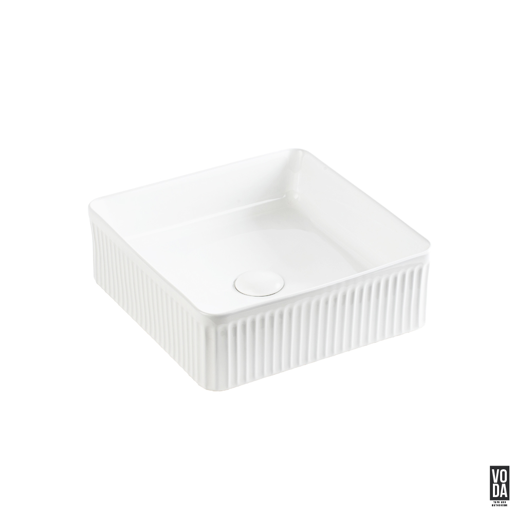 Crete 400mm Square Fluted Ceramic Above Counter Basin Matte White
