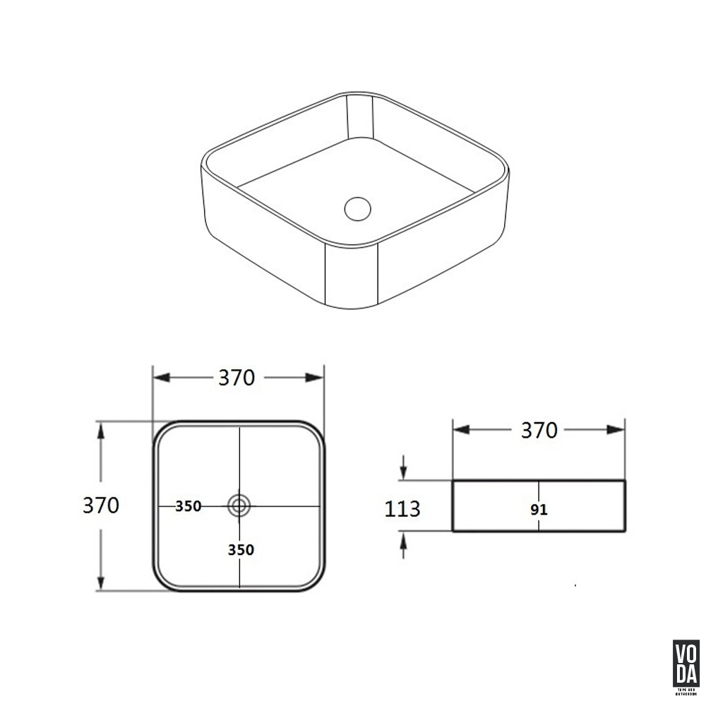 Kliff 370mm Square Ceramic Above Counter Basin Matte Black