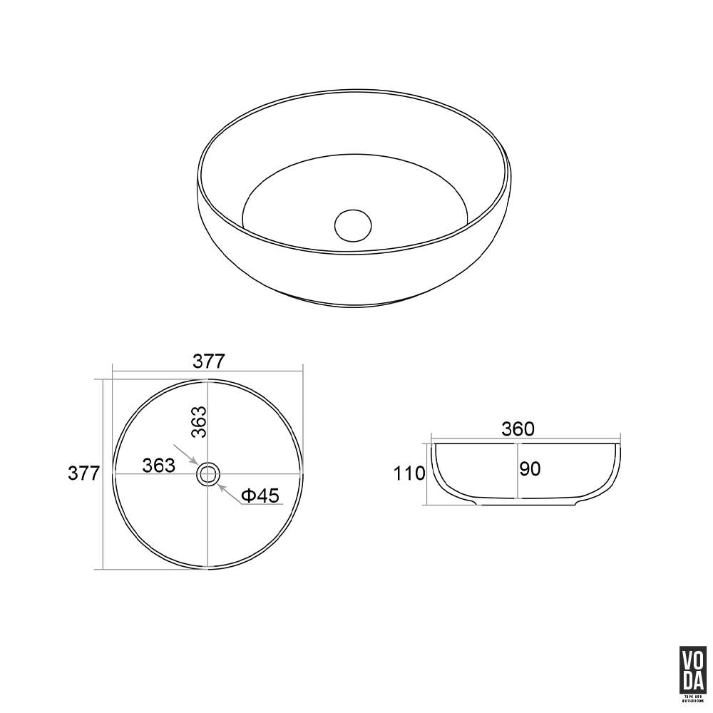 - Dimensions: 370mm L x 370mm W x 110mm H