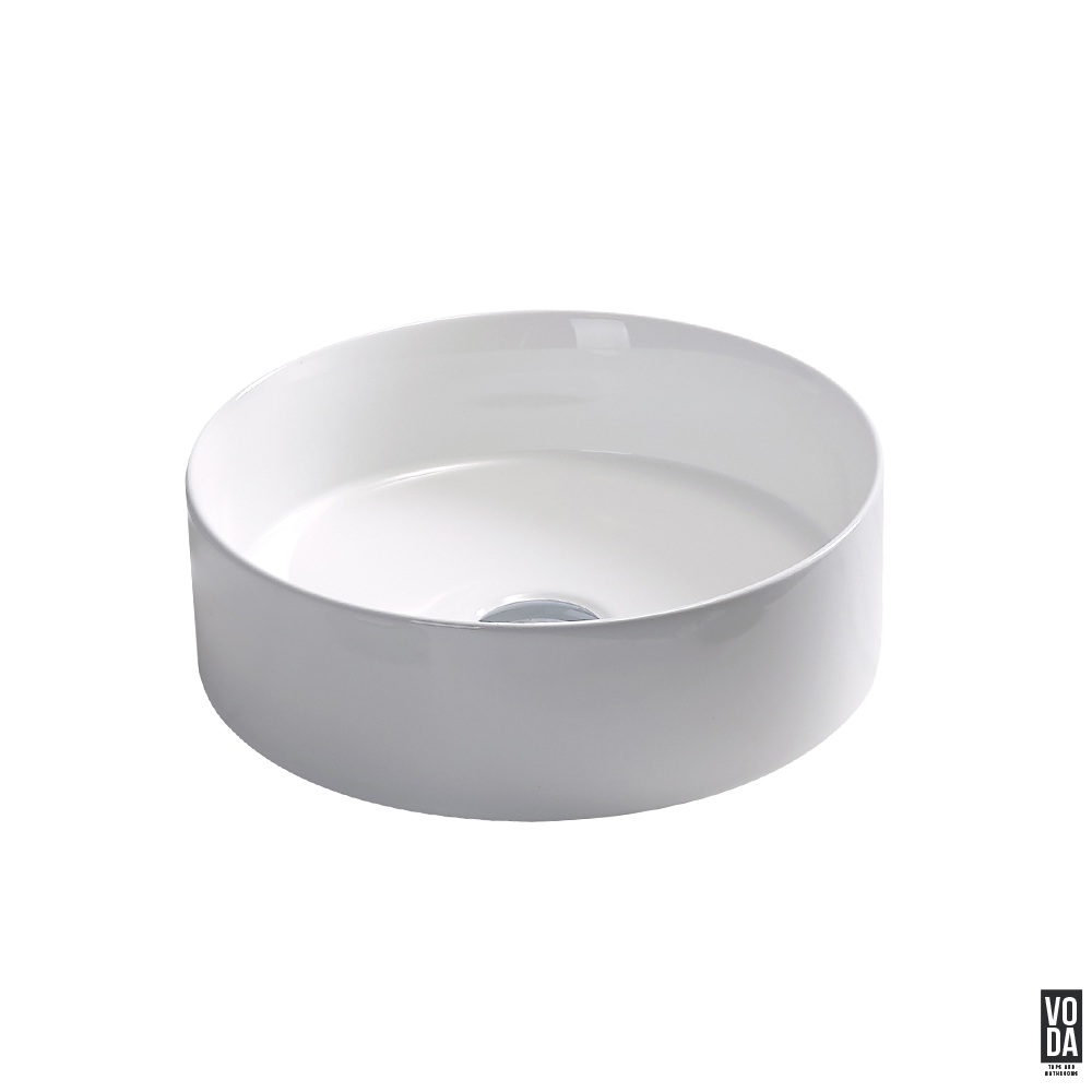 Olley 395mm Round Ceramic Above Counter Basin Gloss White