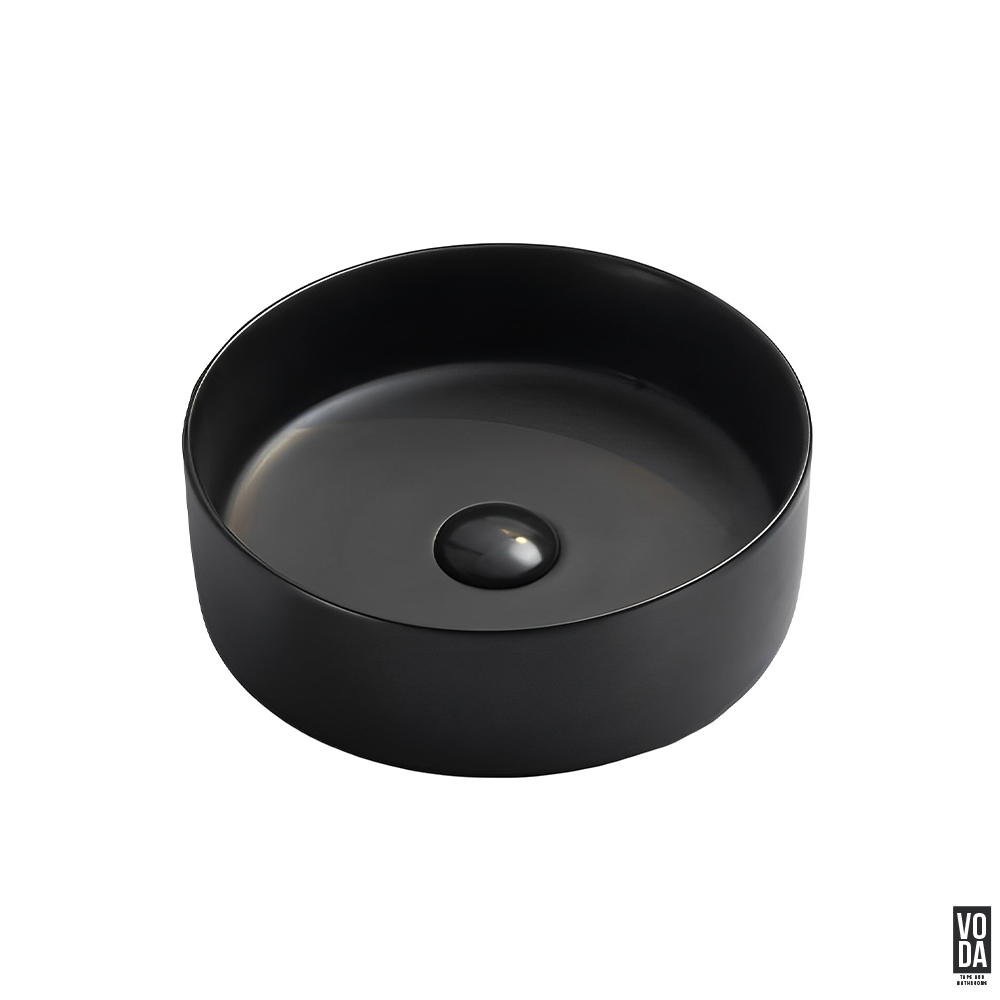 Olley 395mm Round Ceramic Above Counter Basin Matte Black