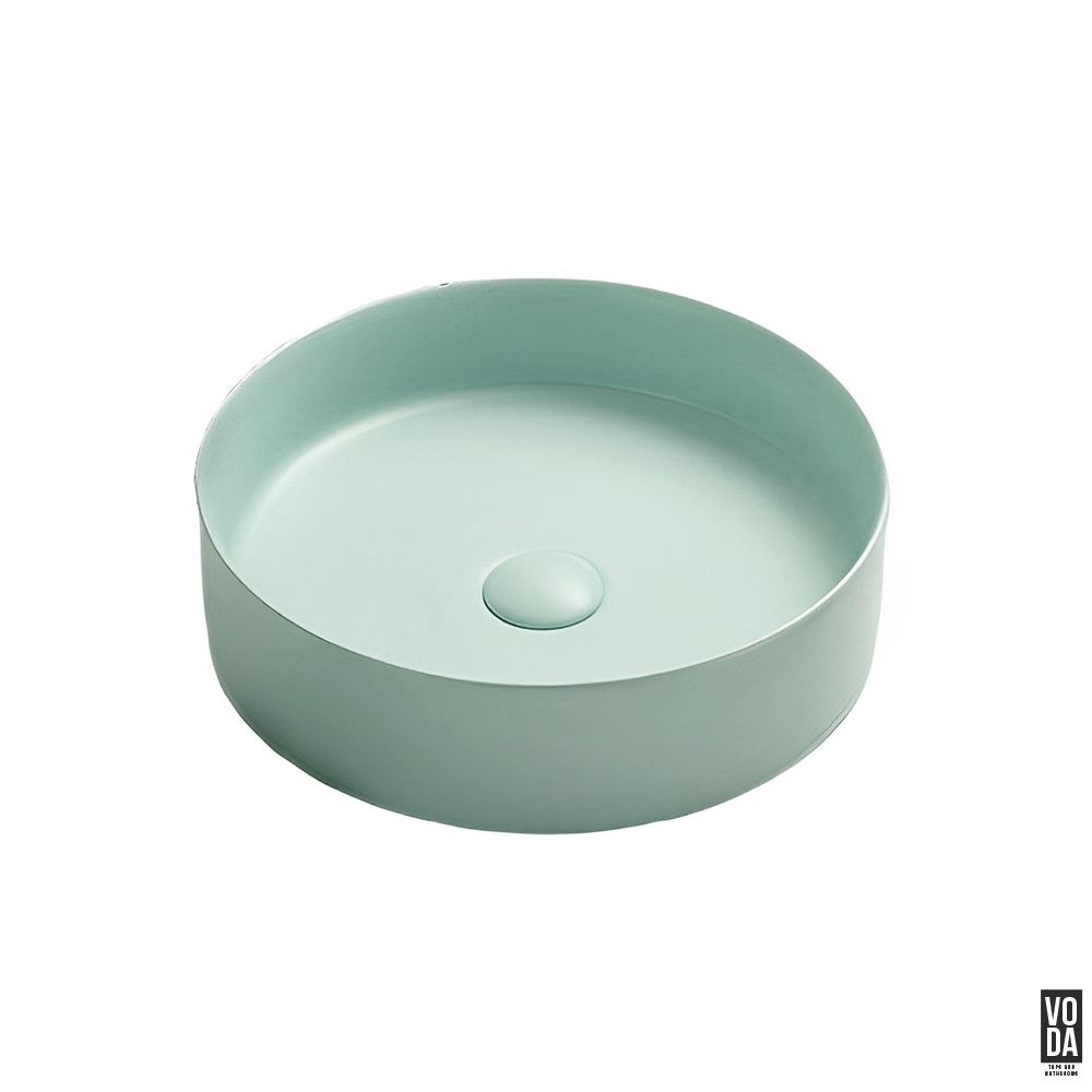 Olley 395mm Round Ceramic Above Counter Basin Matte Mint Green
