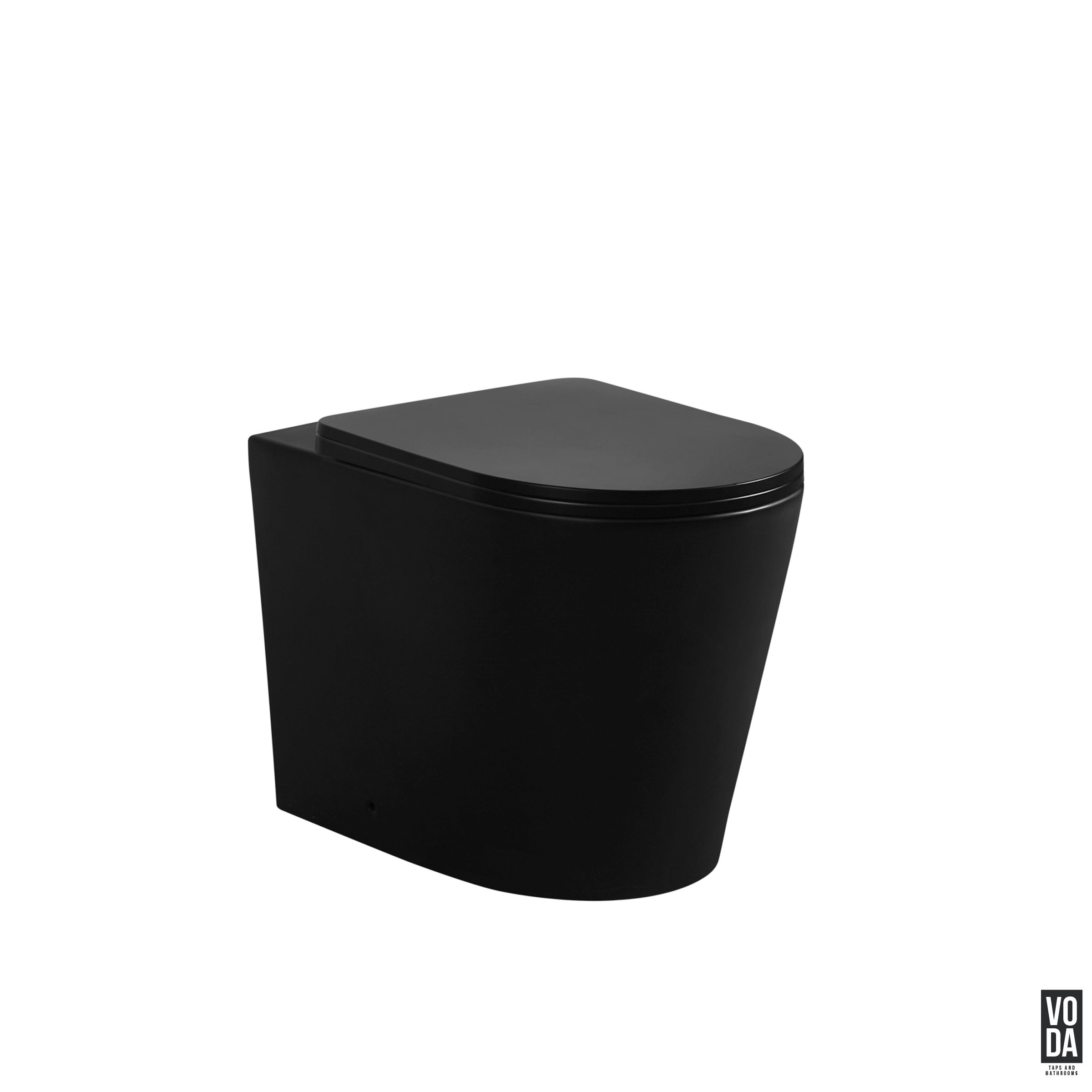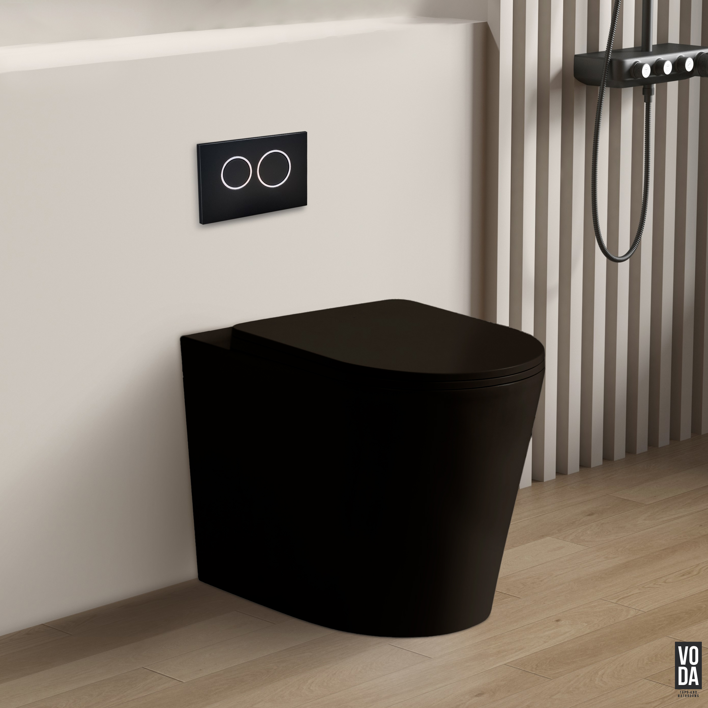 Elevate your bathroom with the Voda Osaze Rimless Wall Faced Floor Pan Matte Black—a fusion of style and innovation for bold, contemporary spaces.