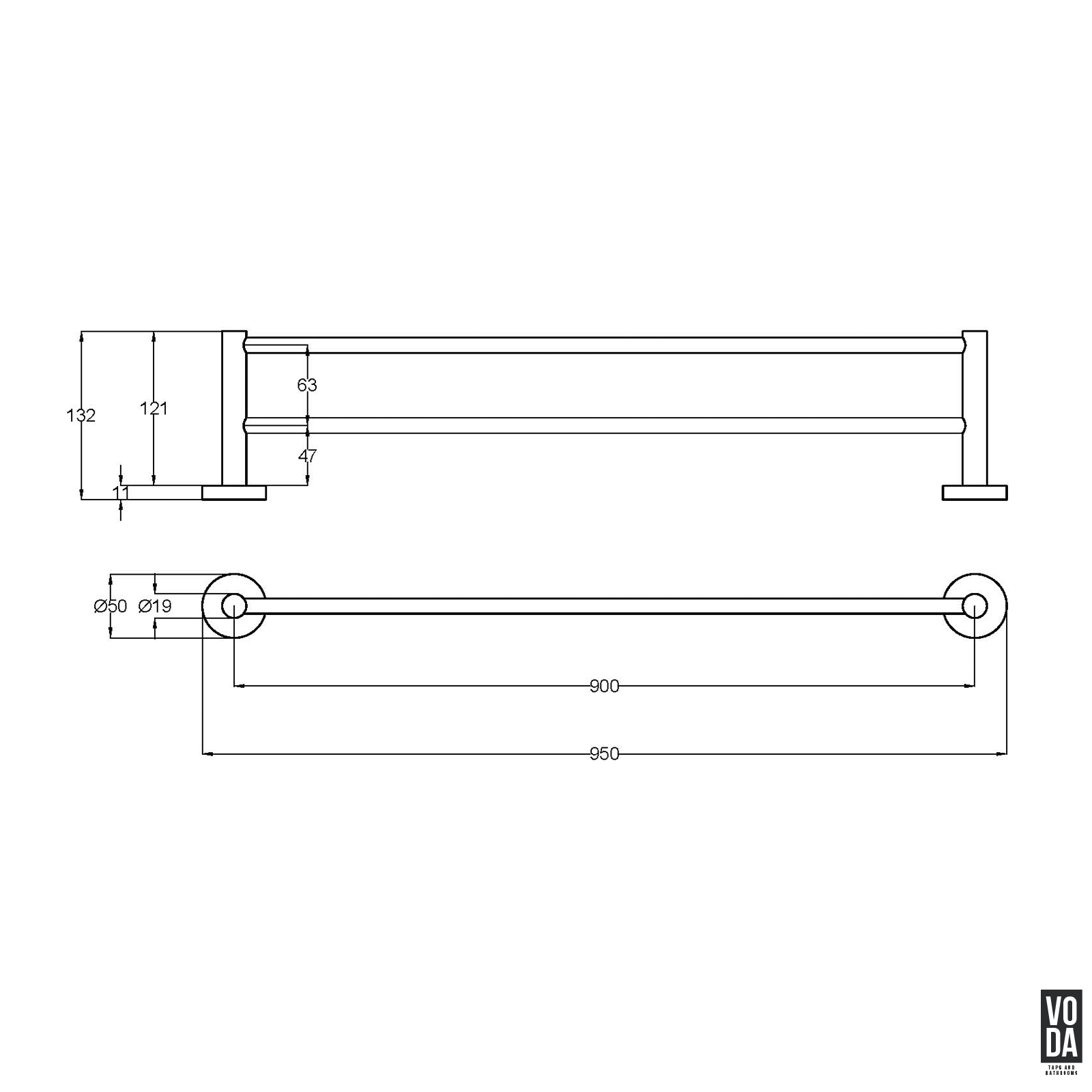 Pure 900mm Double Towel Rail Chrome