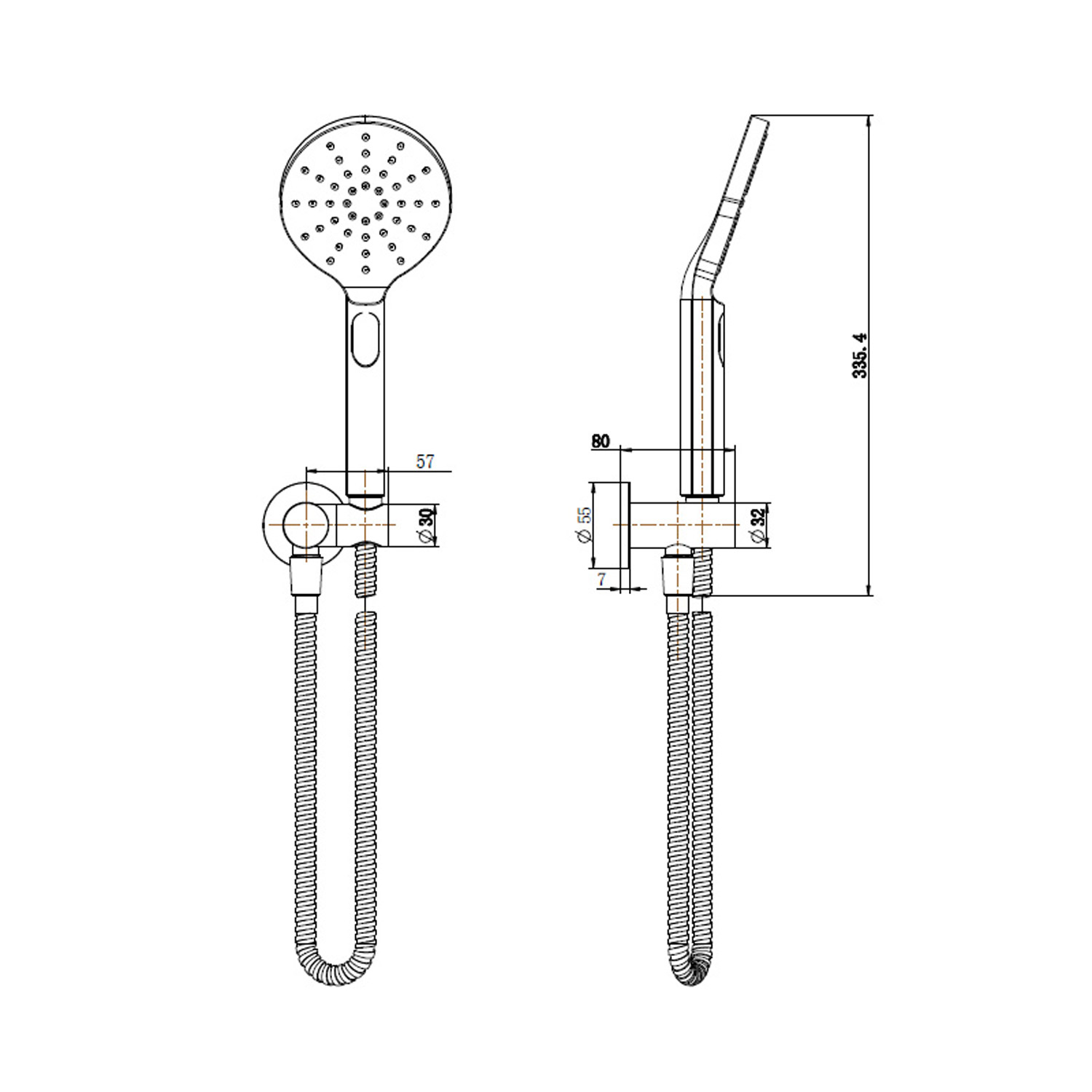 - Round hand shower on wall outlet bracket
