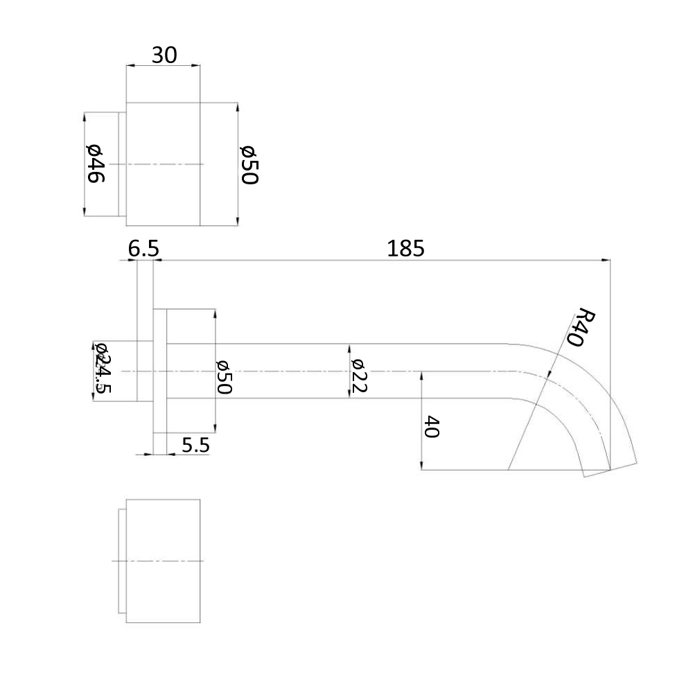 Tara 3 Piece Wall Basin/Bath Set with Ceramic Spindles Chrome